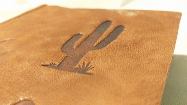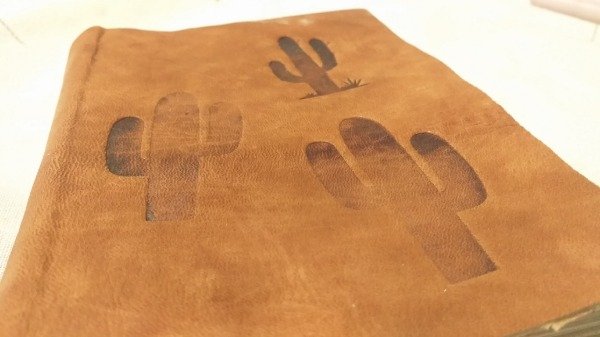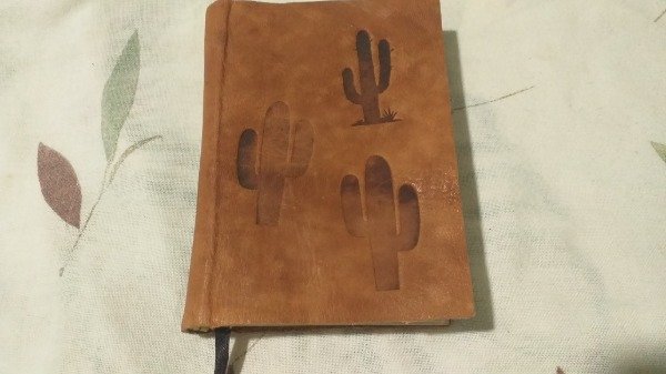 Diseño: Tapa con bajorrelieve de tres cardones, integrando la identidad del paisaje local en una pieza técnica de encuadernación.