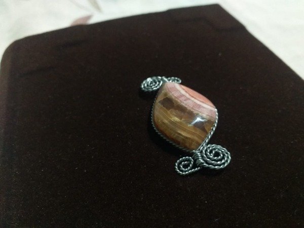 Con engarce de rodocrosita y capillitita, del artesano andalgalense Emanuel Guerrero